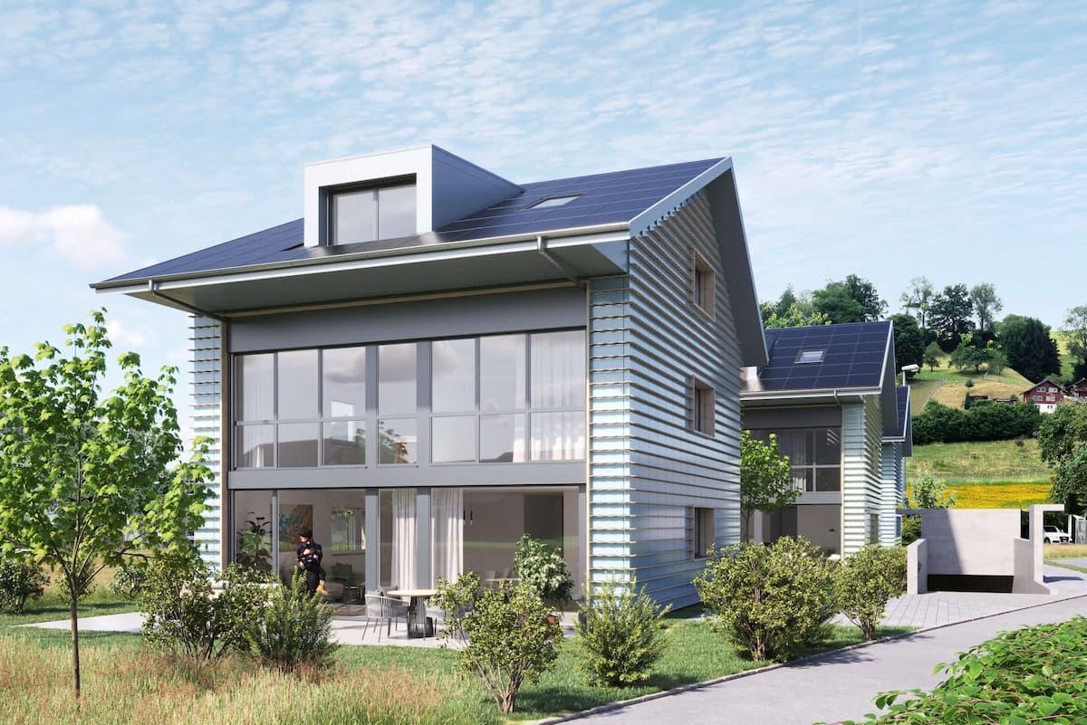 Mit dem 3D.SOLAR Fassadensystem realisieren wir energieunabhängige Gebäude. In Kombination mit Photovoltaik- oder Solarthermieanlagen und deren Energiespeicherung entsteht ein ausgeglichenes Wohnklima ohne Heizung oder Klimaanlagen.